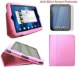 HappyZone - (Pink) Portfolio Leather Case Cover with Muti-Function Stand + Anti-Glare, Matt Finishing Screen Protector for HP TouchPad WiFi (16GB & 32GB) 9.7" Tablet